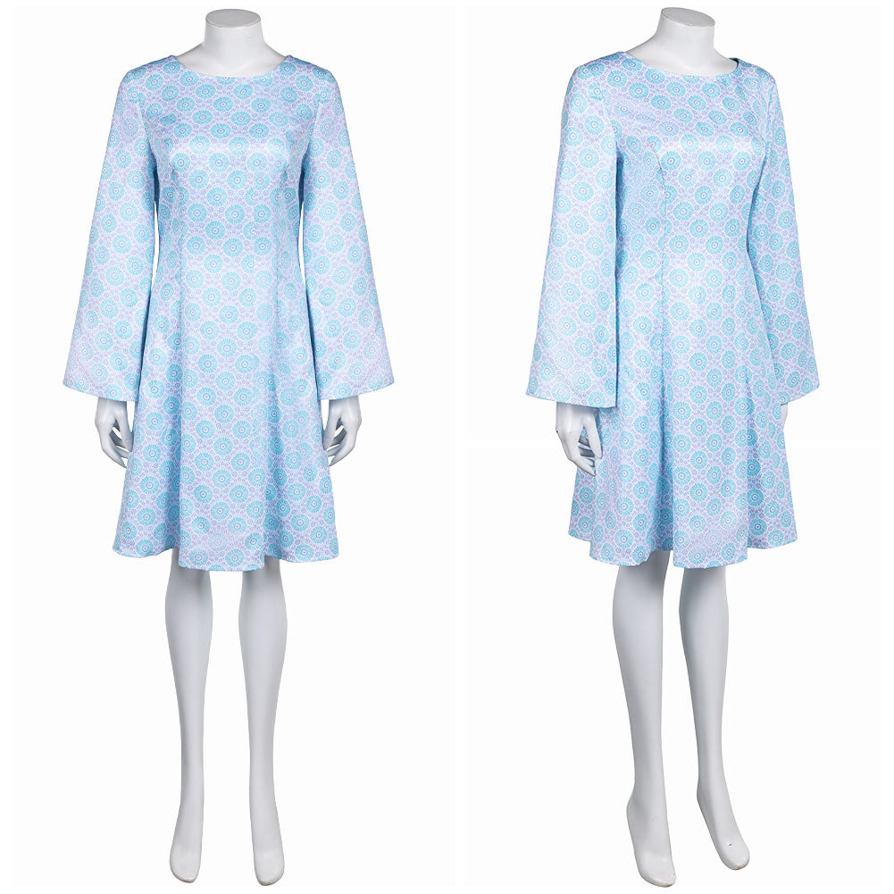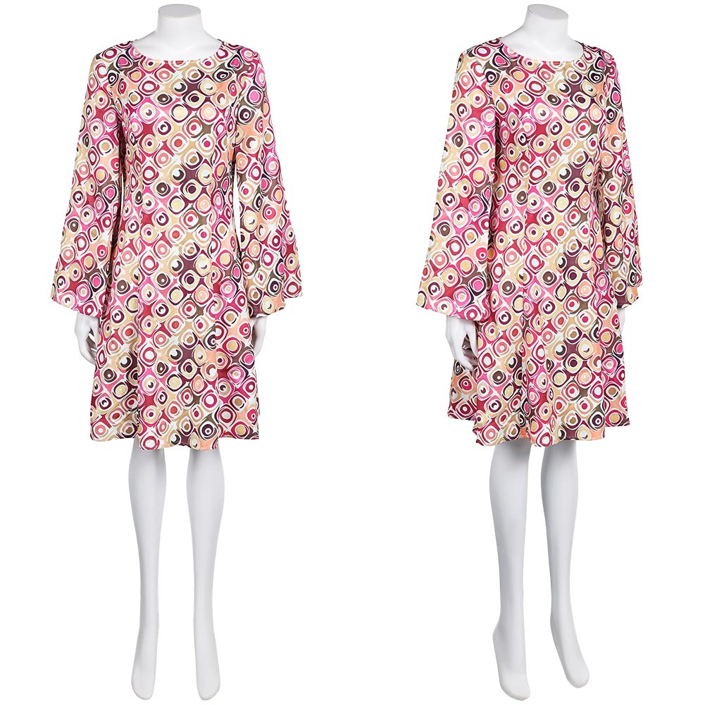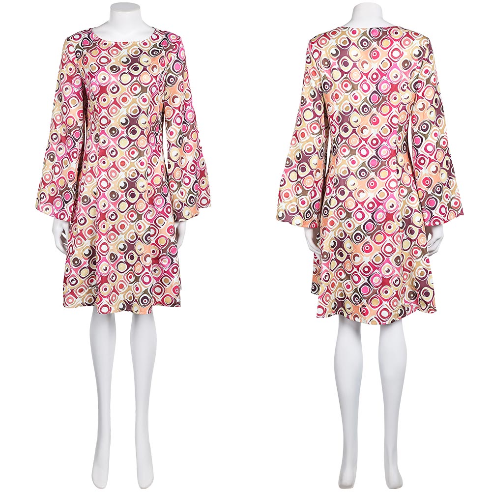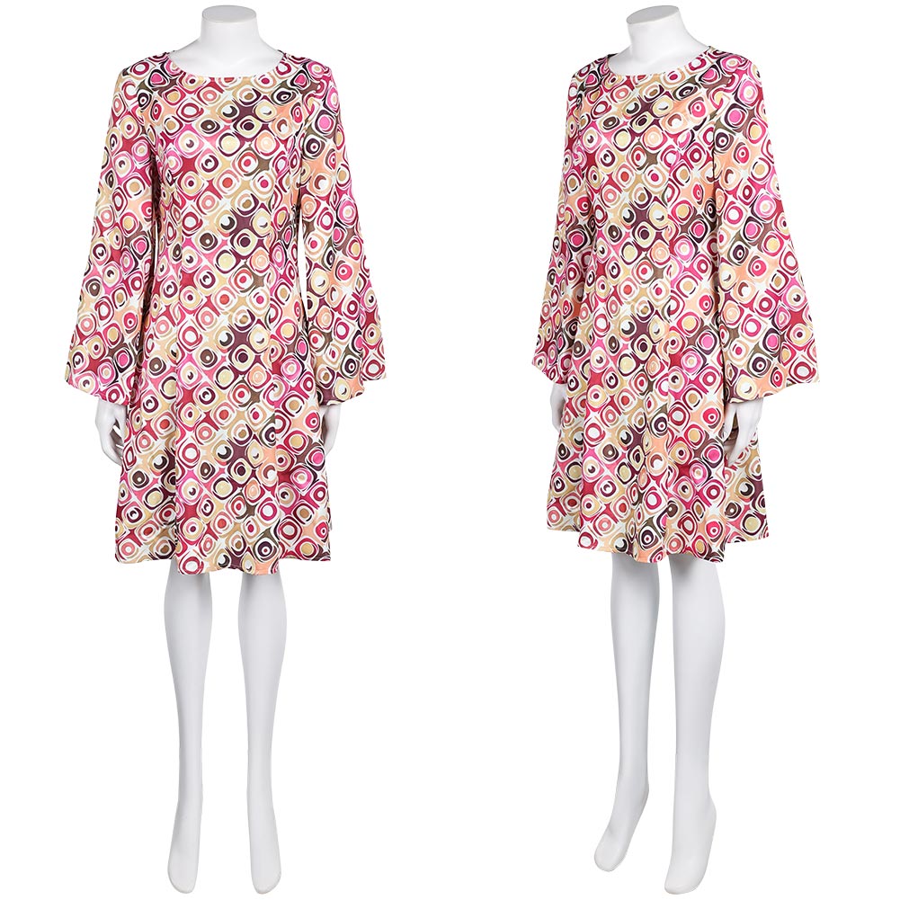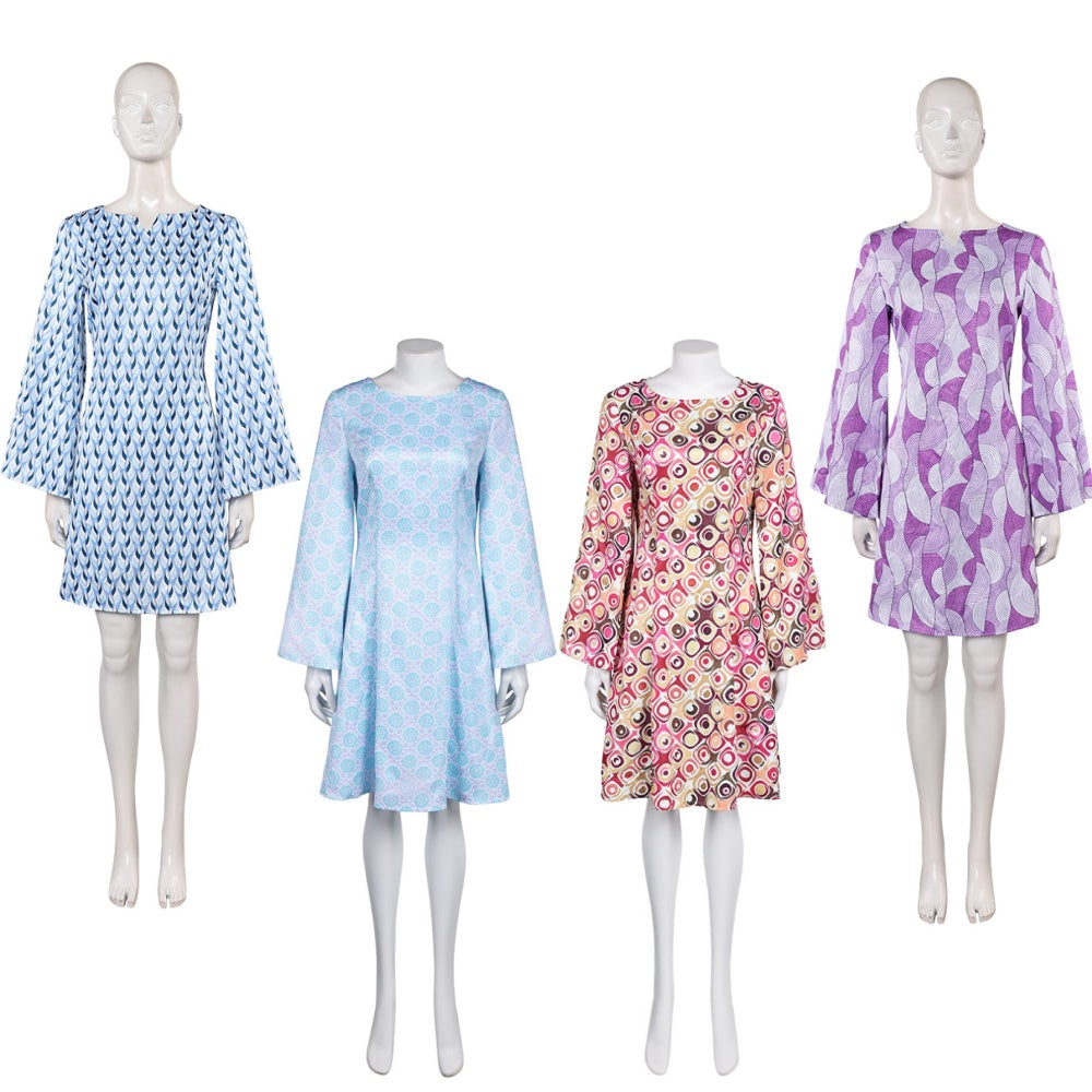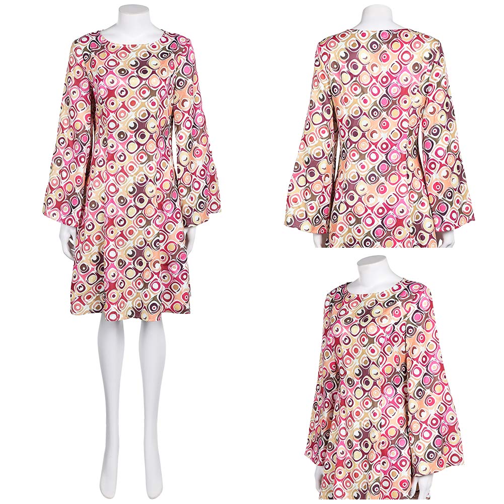 Déguisement Femme 1970s Robe Jacquard Bleue/Violette/Orange Hippie Costume pour Halloween Carnaval