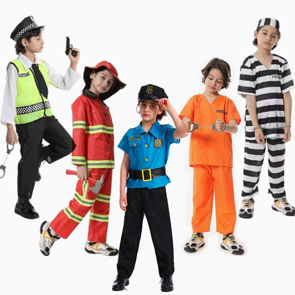 Déguisement Enfant Police Prisonnier Pompier Uniforme Costume Halloween
