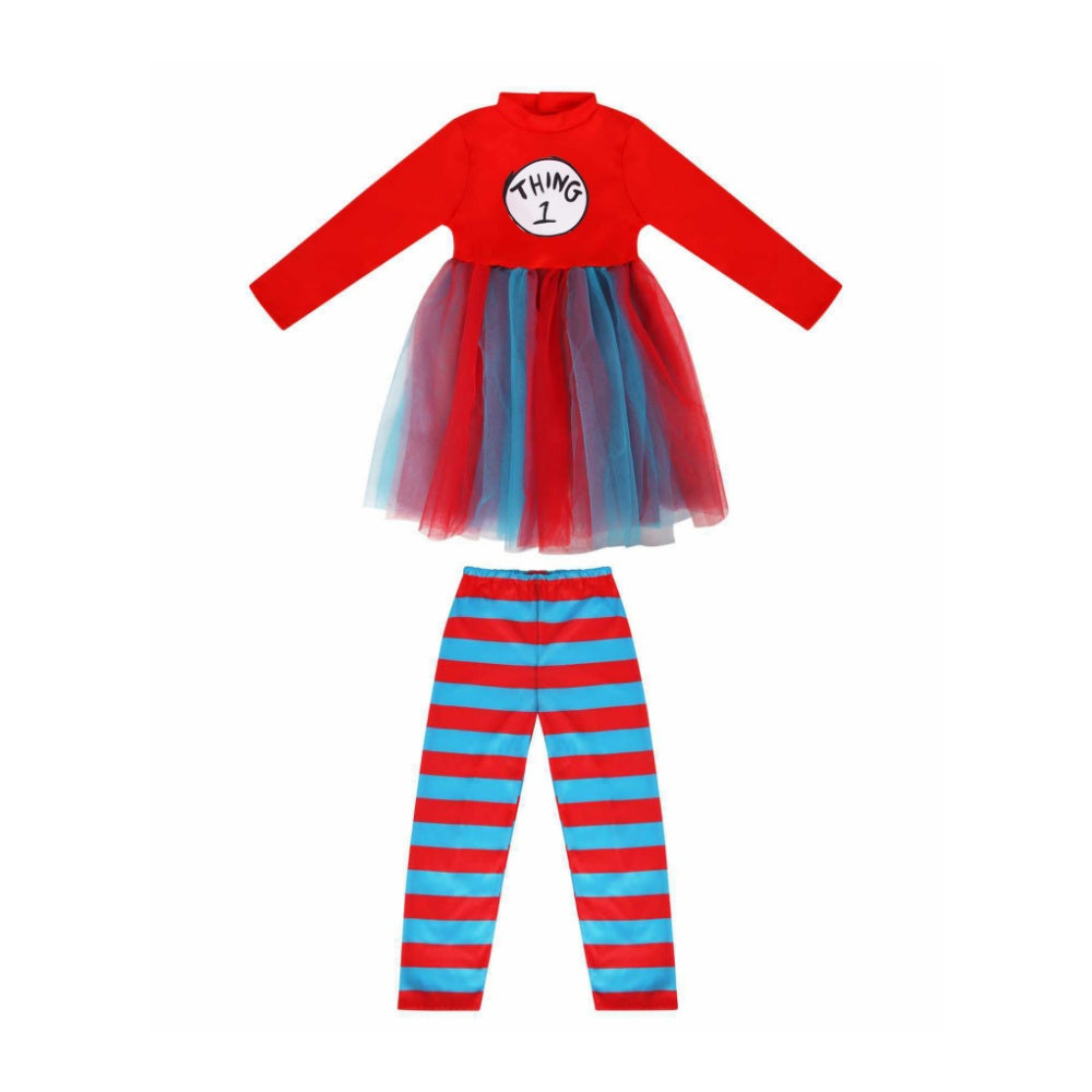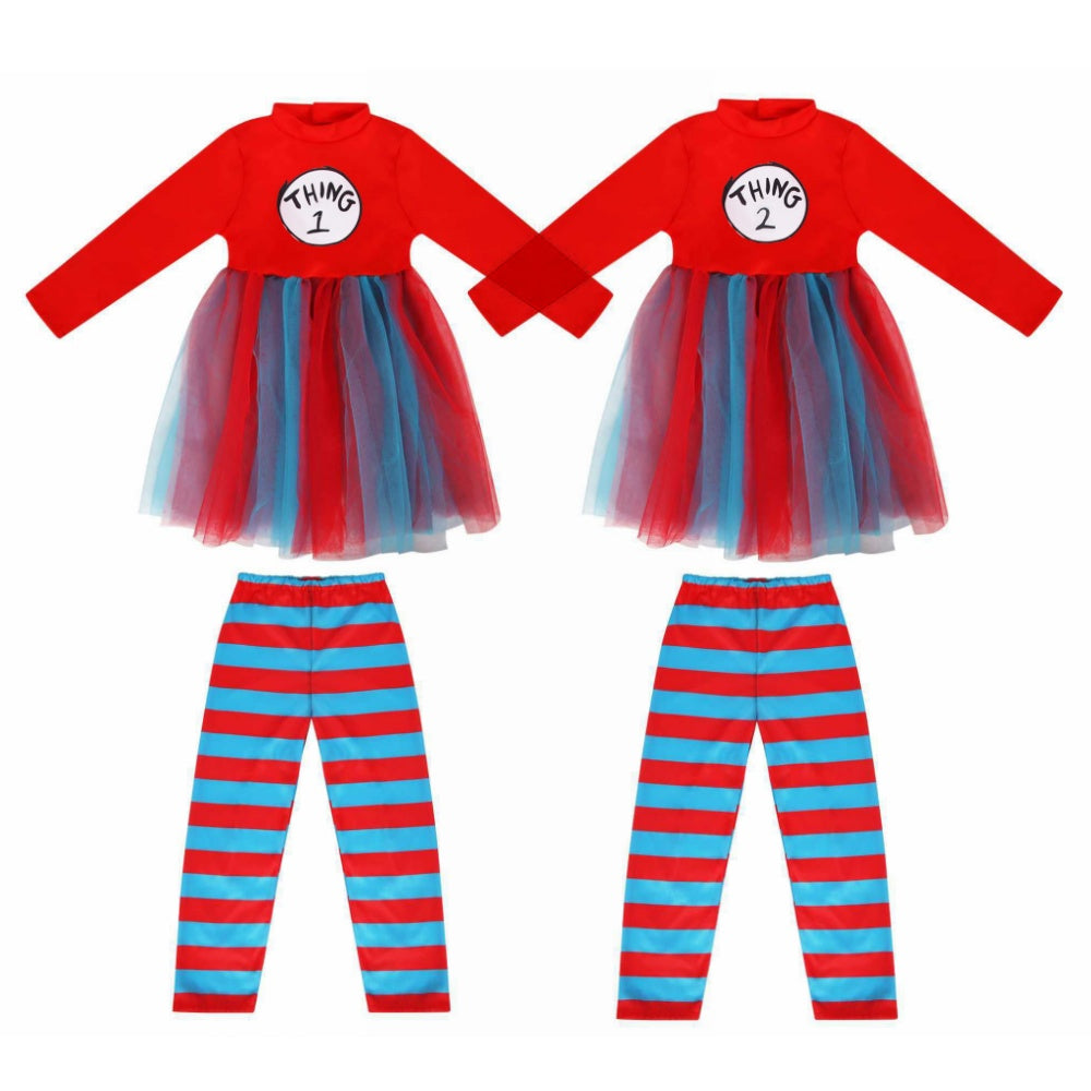 Déguisement Thing One+Thing Two Le Chat Chapeauté Tenue Rouge Enfant pour Journée Mondiale du Livre