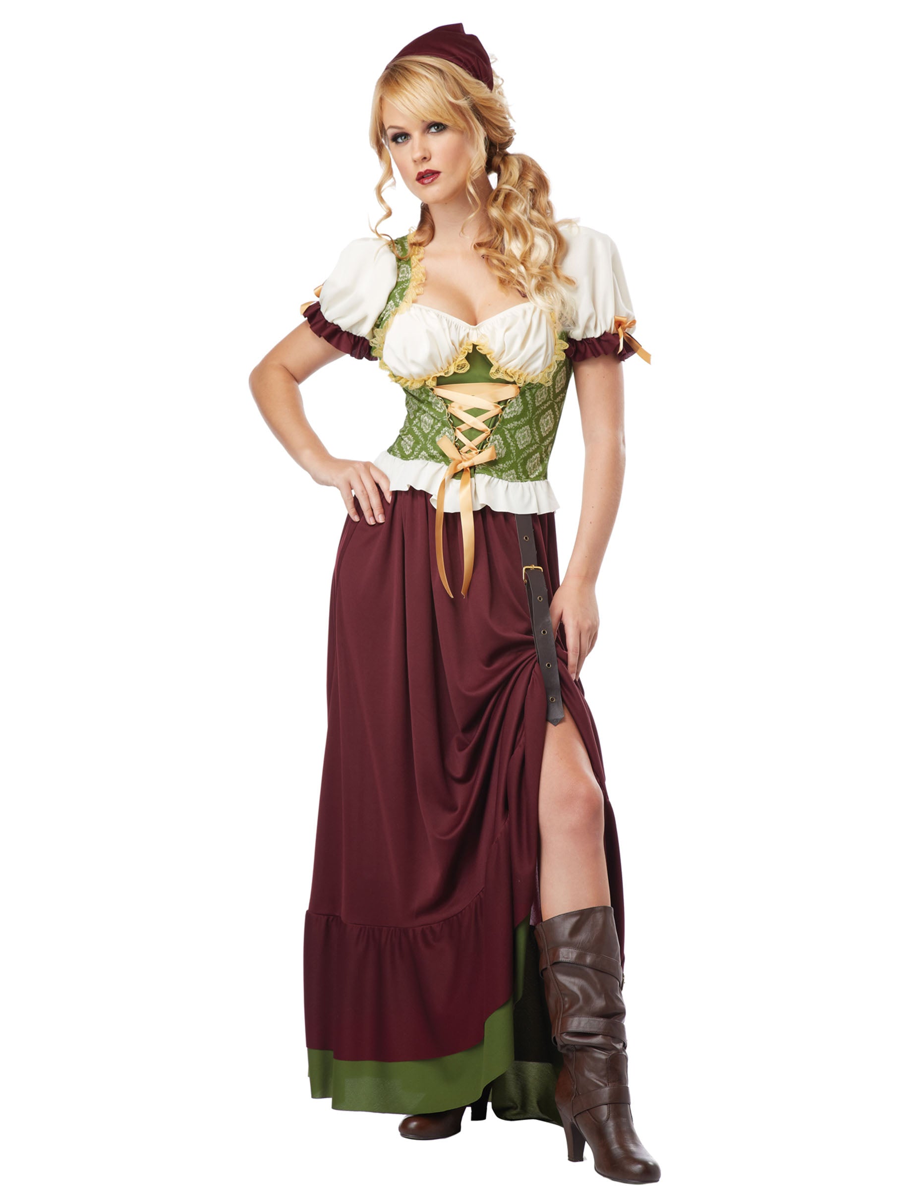 Ce déguisement de Jeune Fille Renaissance est pour femme et est composé d'une robe et d'un bandeau (Chaussures non incluses)