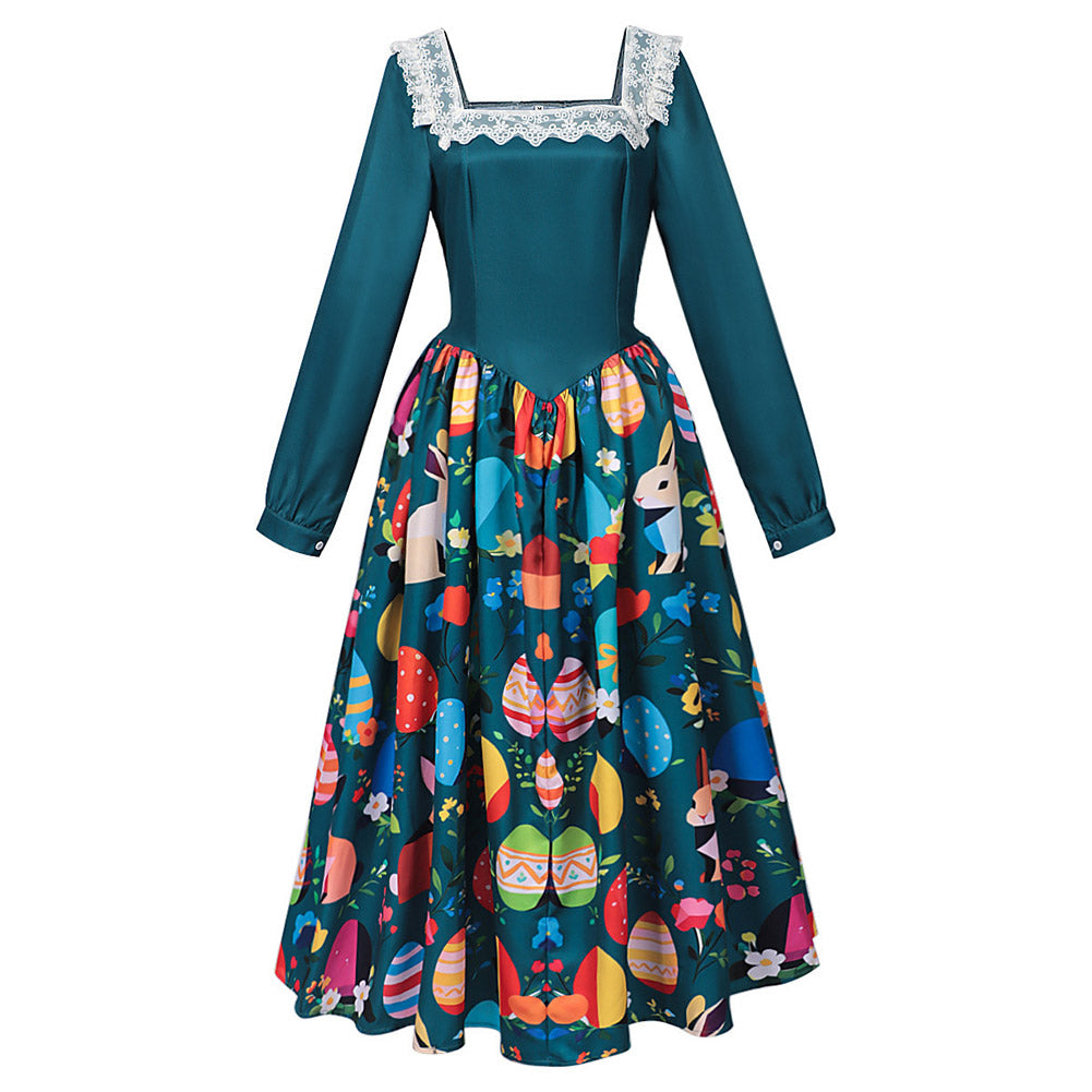 Déguisement Femme Robe Vintage à Imprimé de Pâques Costume