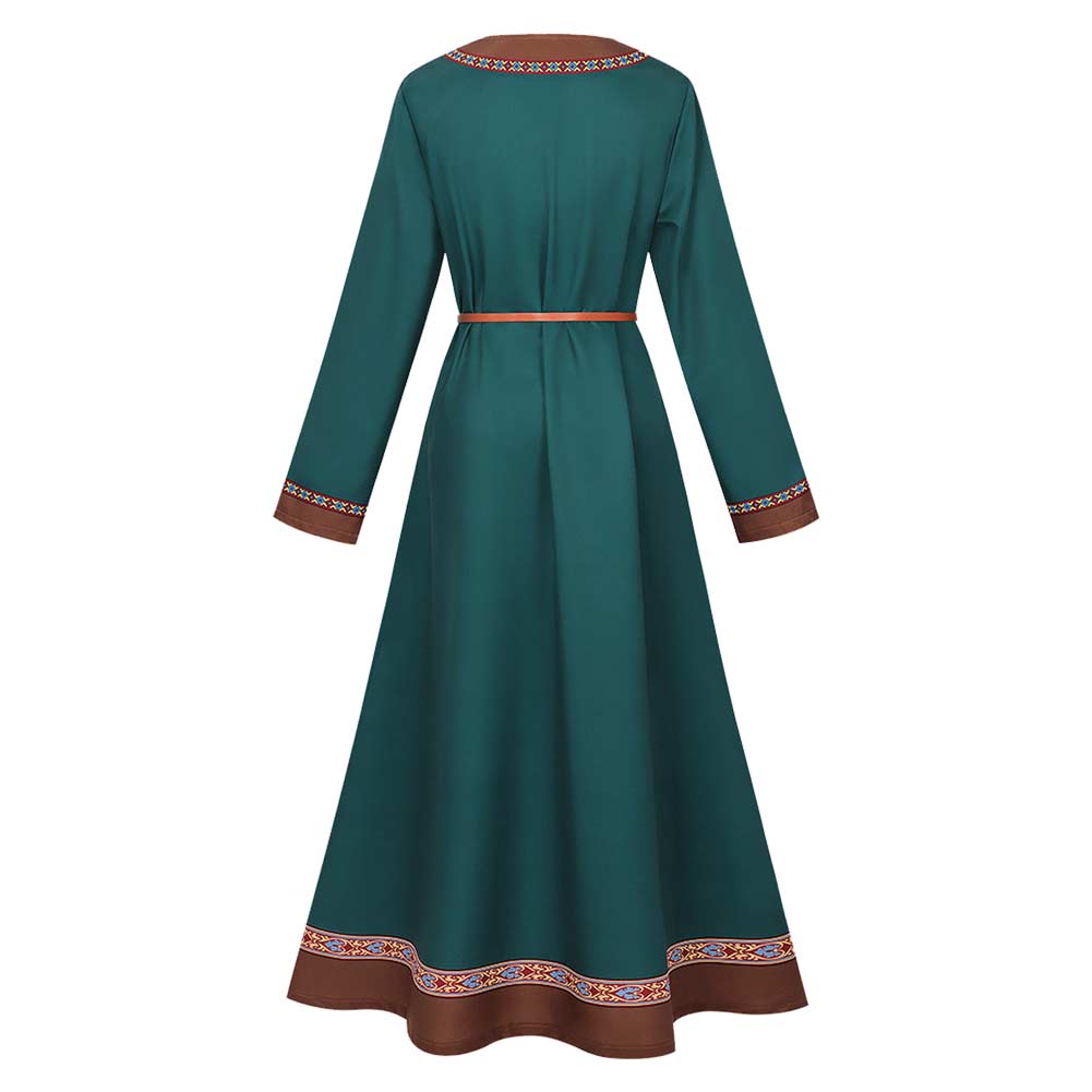 Déguisement Femme Robe Viking Rurale Médiévale Vert Paon Foncé Costume
