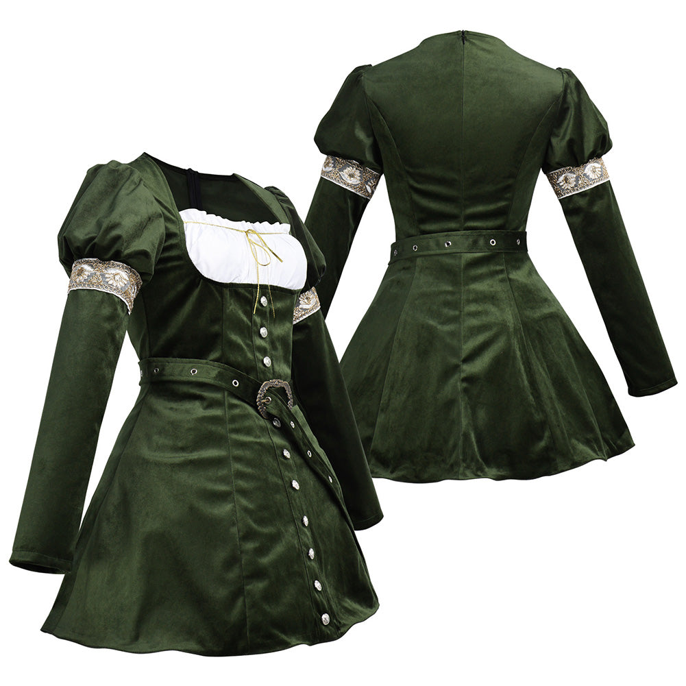 Déguisement Femme Robe Verte Gothique Médiévale Costume pour Halloween